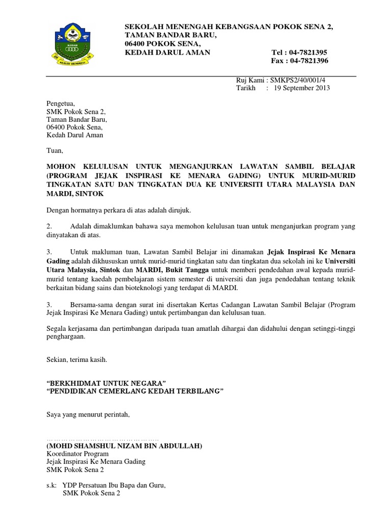 . A kelulusan naib canselor b surat. Pengetua Sekolah Menengah Kebangsaan Ahmad Razali 68000 Ampang Selangor Darul Ehsan. Kementerian Hal Ehwal Dalam Negeri Negara Brunei Darussalam Permohonan Mendapatkan Kebenaran Menggunakan Logo.